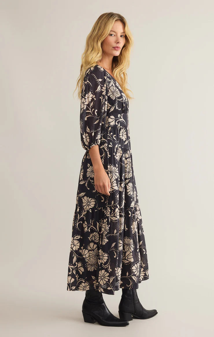 Crafted from lightweight textured voile, an airy woven fabric we love, this floral midi dress features a flattering v-neck and a hidden side seam zipper. With long sleeves and a flowy silhouette, it’s perfect for daytime events or date nights.
