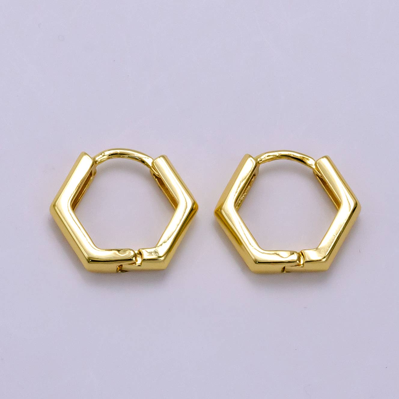 24K Gold Filled Hexagon Huggie Hoop Earrings