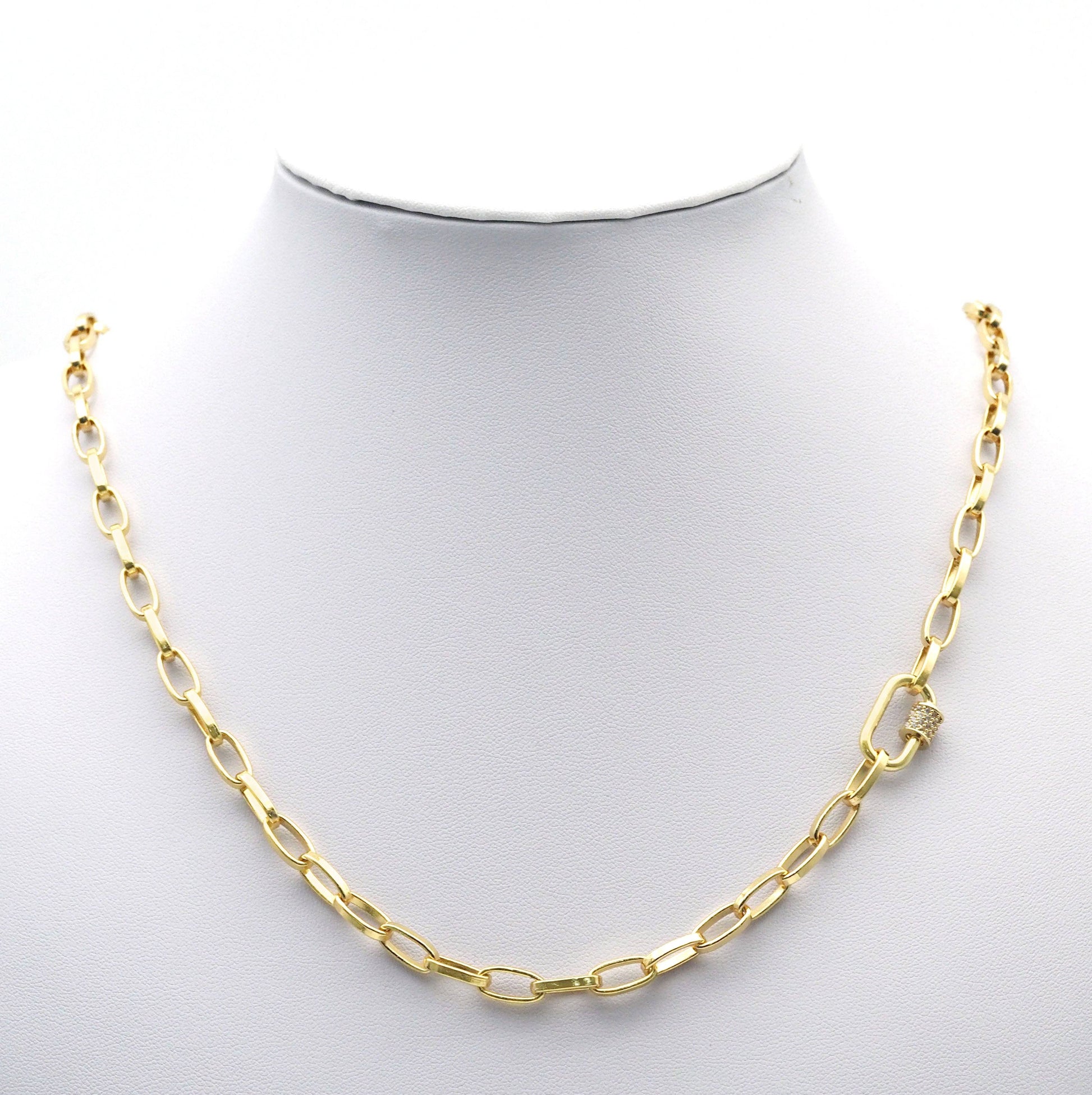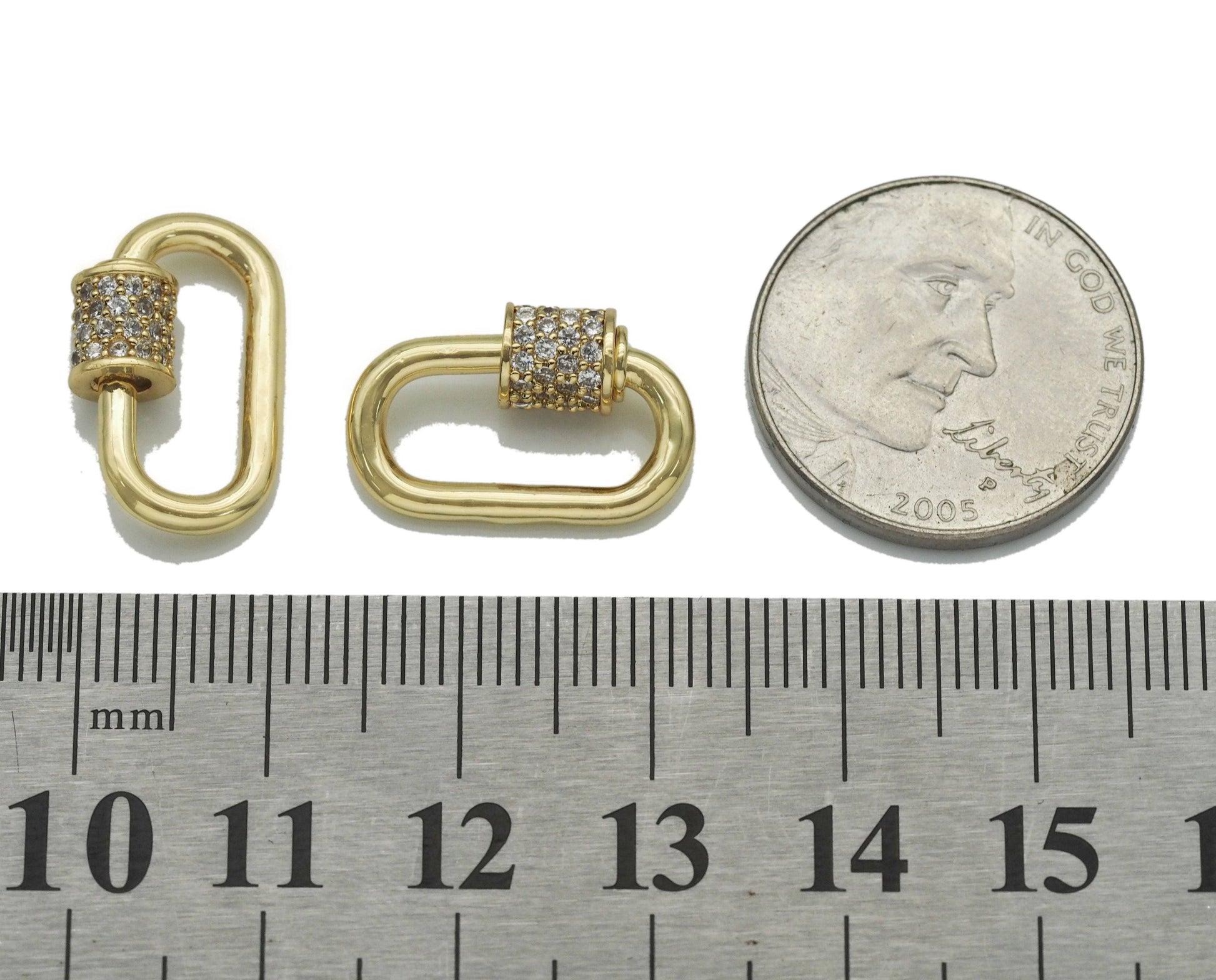 18K Gold CZ Pave Oval Shape Screw Carabiner