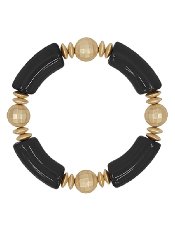 Black Acrylic & Gold Beaded Stretch Bracelet