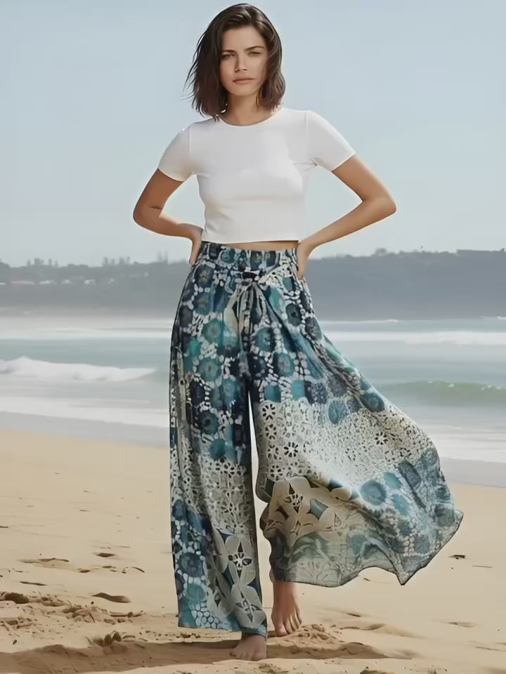 Blue Metallic Faux Wrap Pants