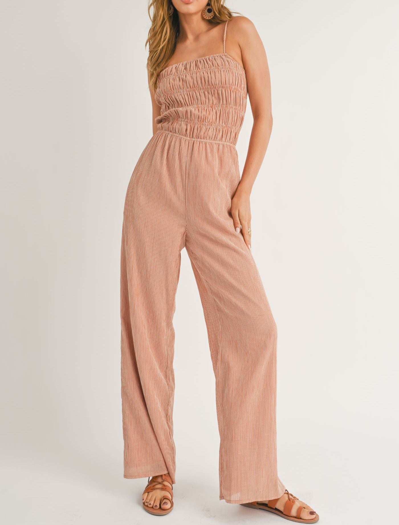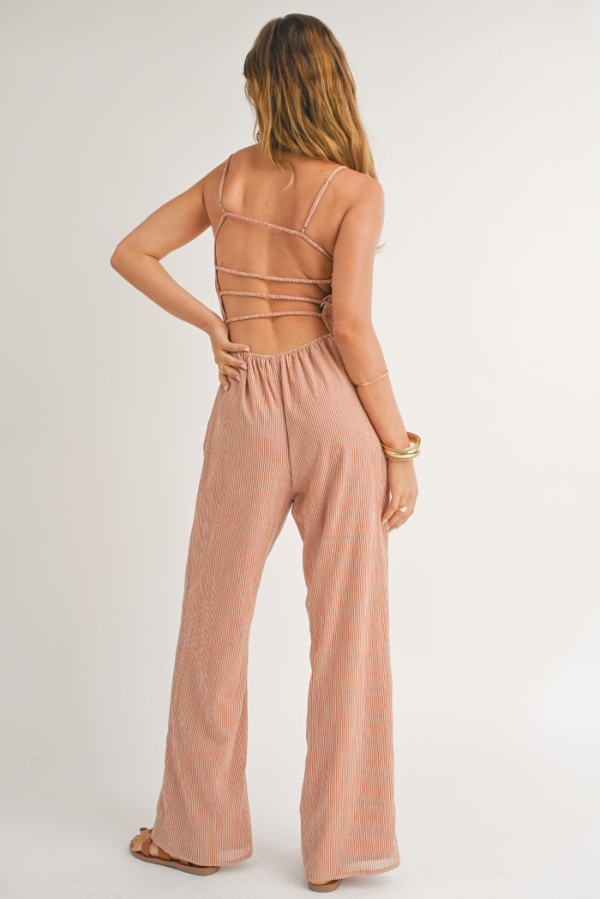This one-of-a-kind jumpsuit boasts an alluring color combo, adding a touch of natural sophistication. The stretchy chest and waist guarantee a comfy and flattering fit. With its noodle straps and open rear, it's the ideal ensemble for sunny days.