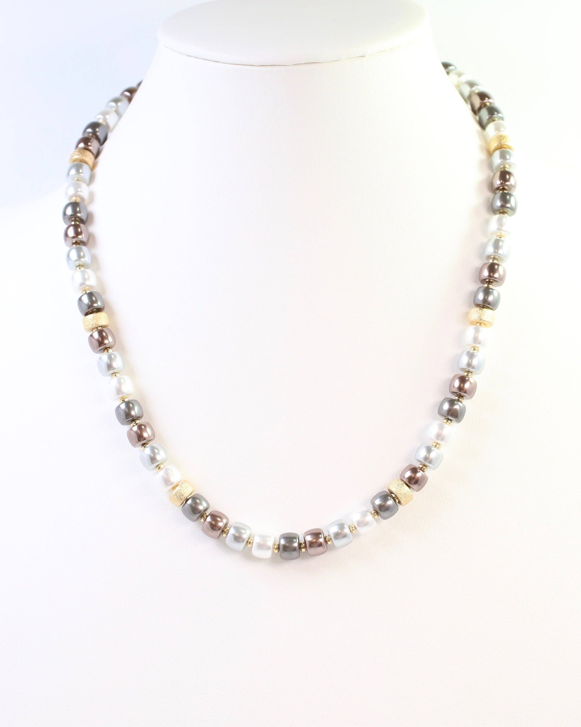 Cordova Glass Beaded Necklace Pearl Gunmetal