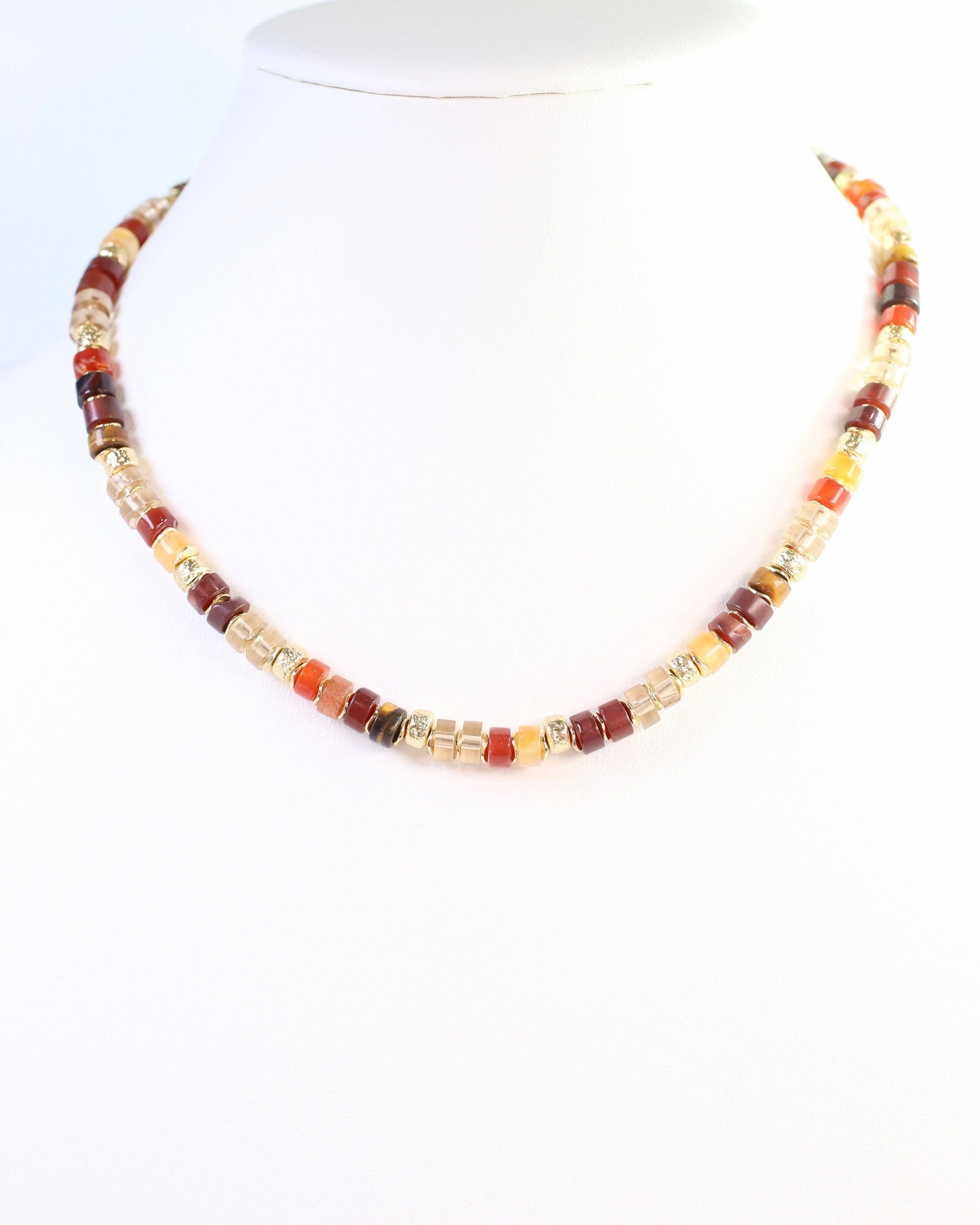 Juneau Glass Beaded Necklace With Gold Accents Topaz