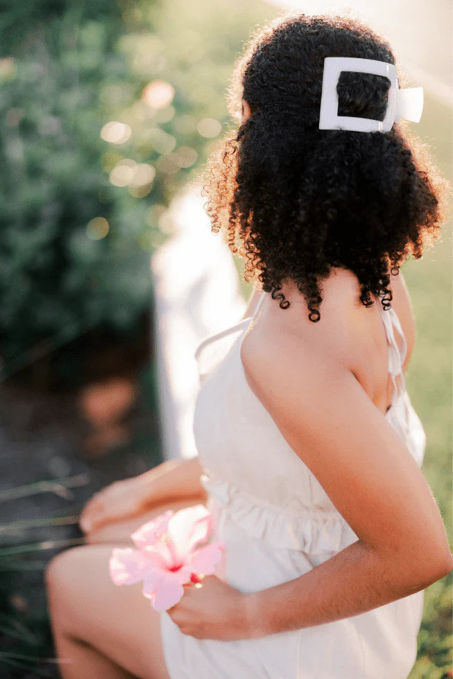 Unwind and relax with the new TELETIES Flat Square Hair Clip! Designed with our same innovative material that is nearly unbreakable, this clip is perfect for lying down, doing yoga or simply laying back without discomfort.