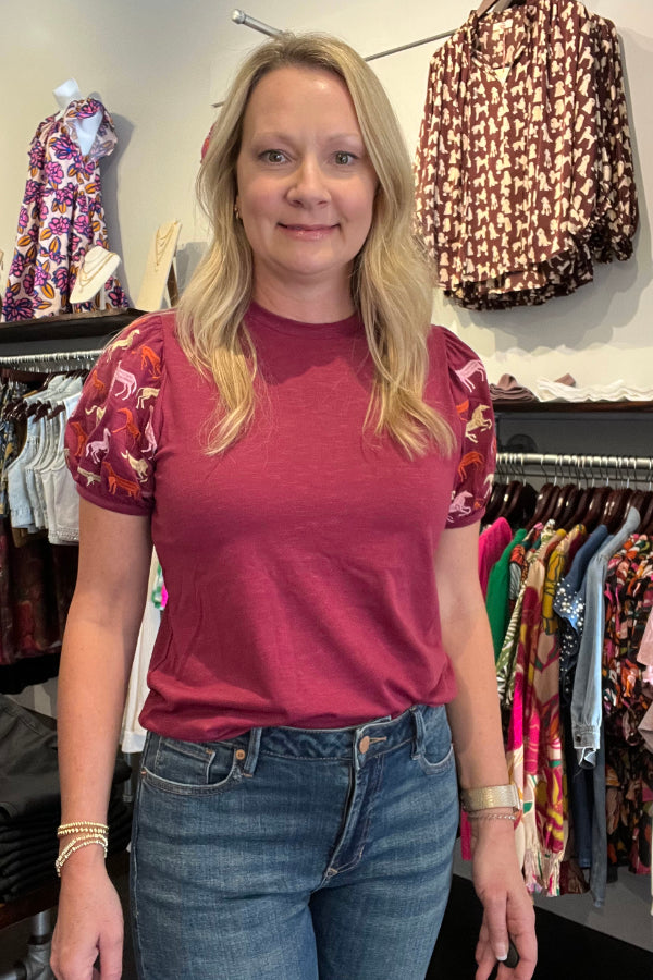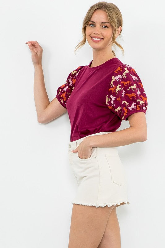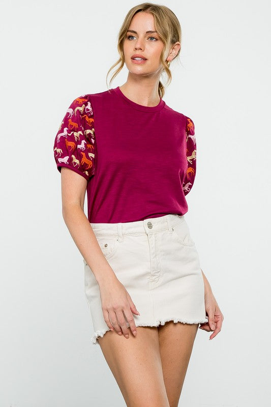 Embroidered Horse Print Top