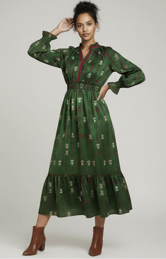 • Midi length with tiered hem