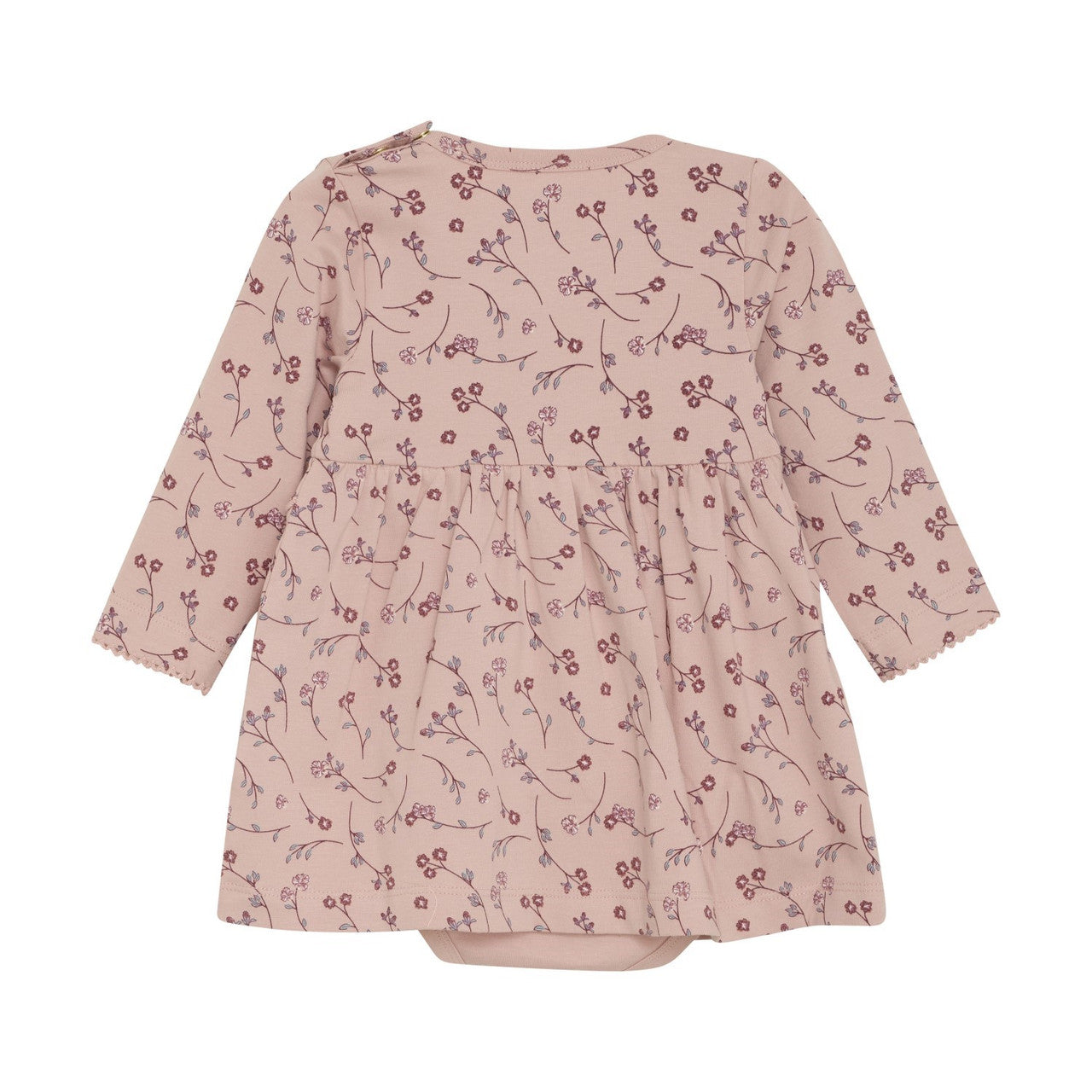 This Minymo long-sleeve dress features a charming all-over print and delicate frills at the waist, delivering a graceful and fashionable outfit for girls.