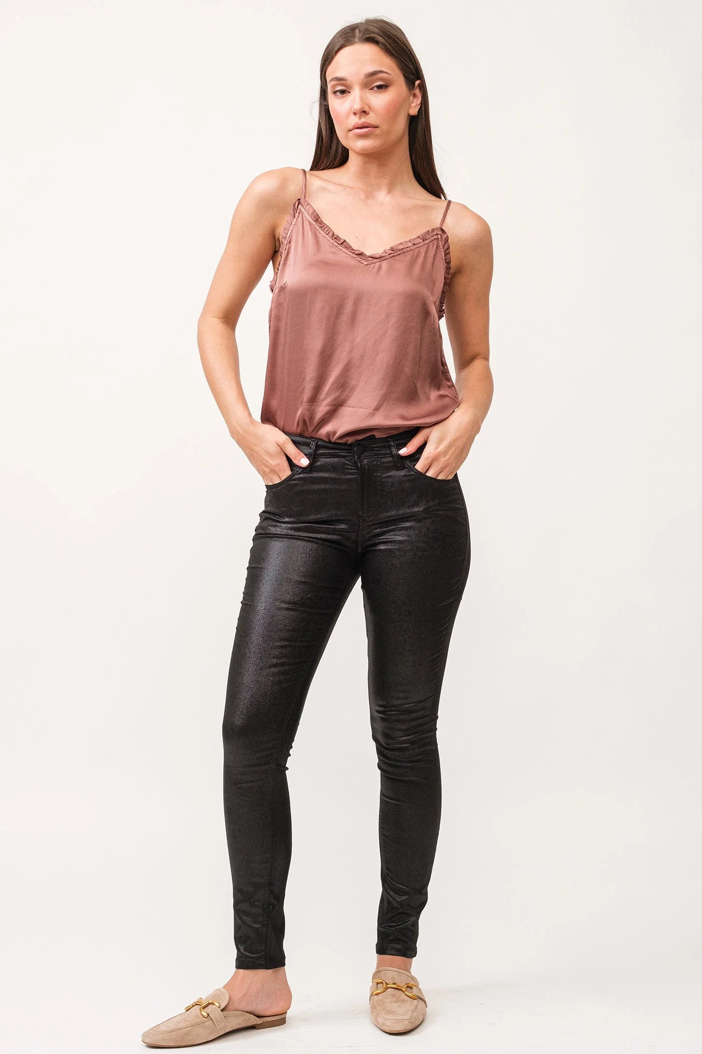 Gisele mid rise skinny ankle pants with a clean hem, perfect for a sleek and modern look. Designed to provide a comfortable fit that hugs your curves, these pants are versatile and ideal for any lifestyle. Wear them for both casual and formal occasions, ensuring style and quality in your wardrobe. Solid color woven on a relaxed fit for ease of movement.