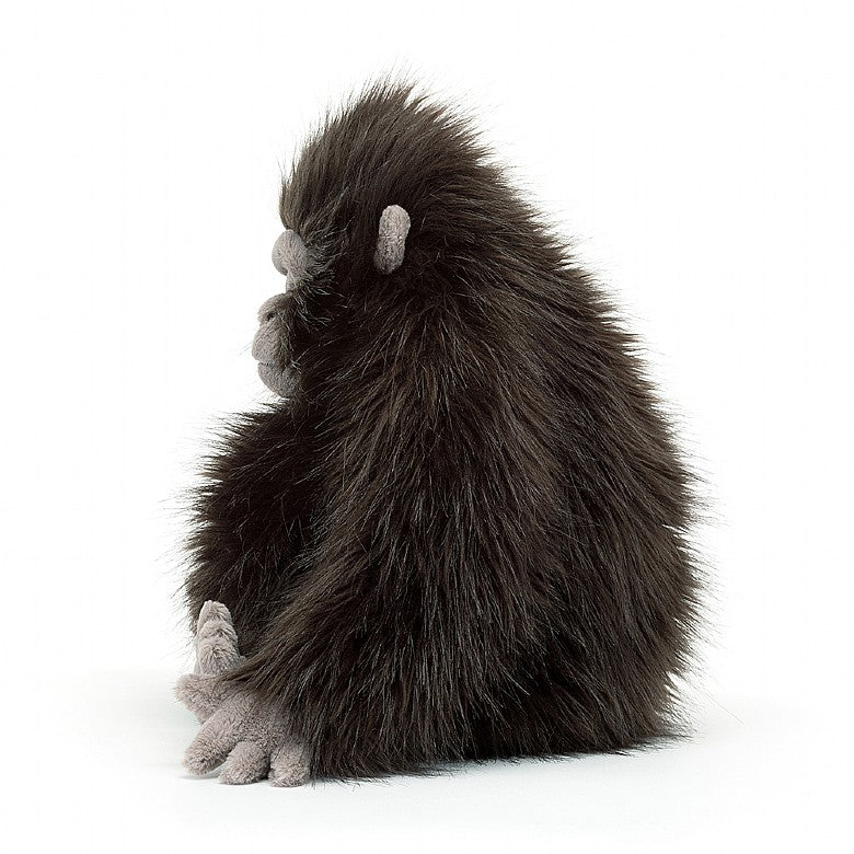 Bringing silverback. Need heavyweight hugs? Gomez Gorilla has got you. This great ape has great long snuggling arms, covered in inky, silky fur, with grey stitch suedette hands and feet, a piping mouth and a bold furrowed brow. Curl up with Gomez anytime.