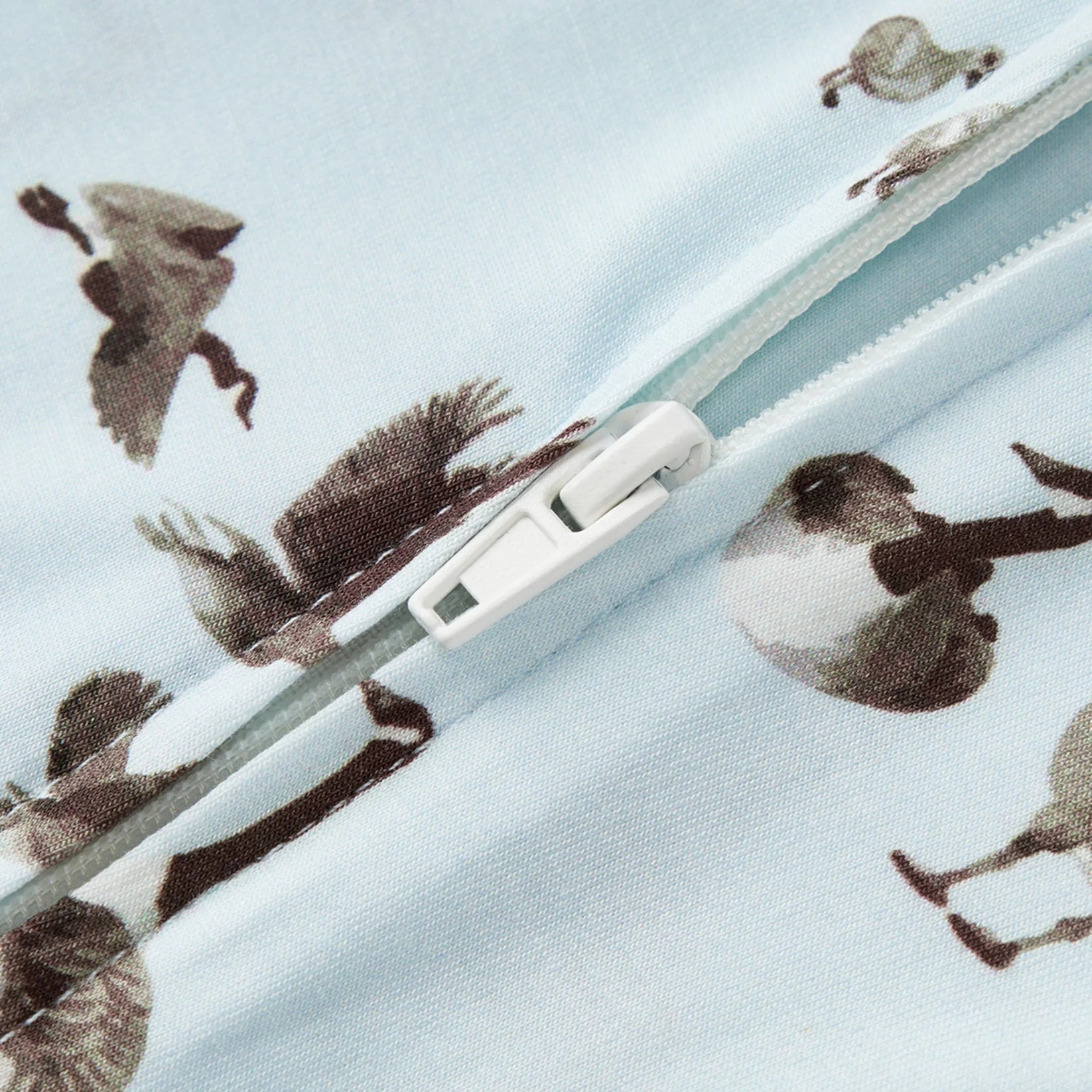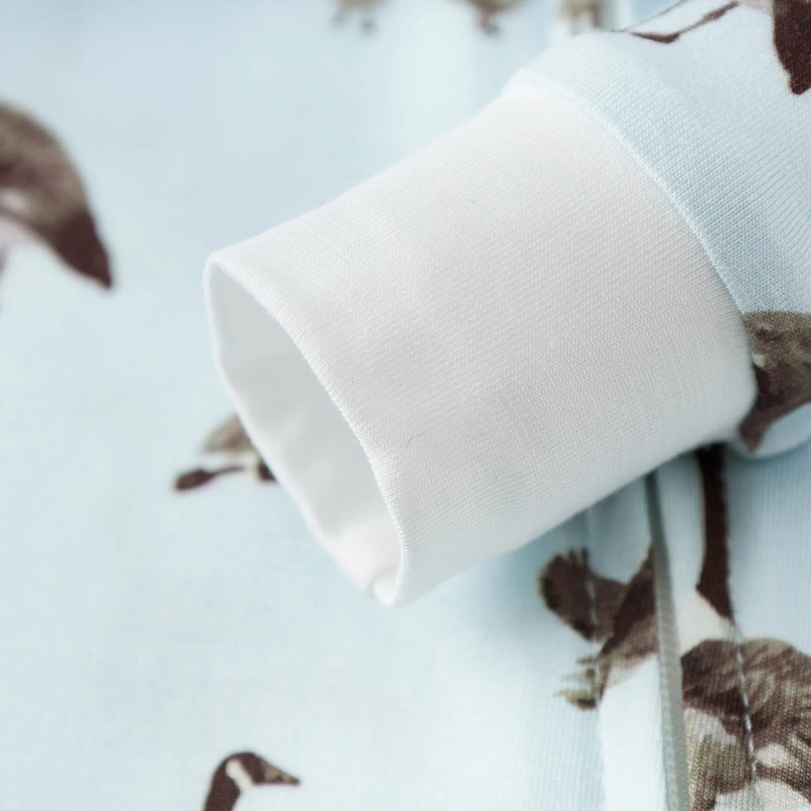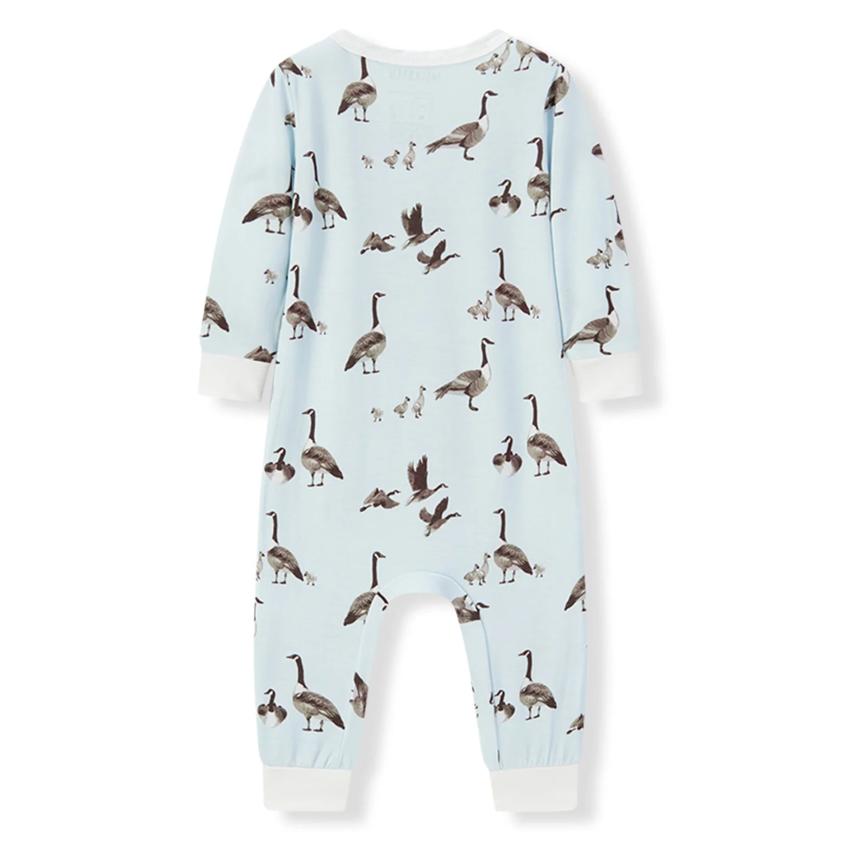 Our extra soft Luxe Stretch Zipper Pajama in the Goose print blurs the lines between sleepy time, playtime, and cuddle time. The open foot detail allows your little ones greater mobility, while the midline, neck-to-knee zipper provides ease and flexibility of changing. Added details include a crew neckline, contrasting wide-band cuffs, and a stylized fabric zipper tab cover.