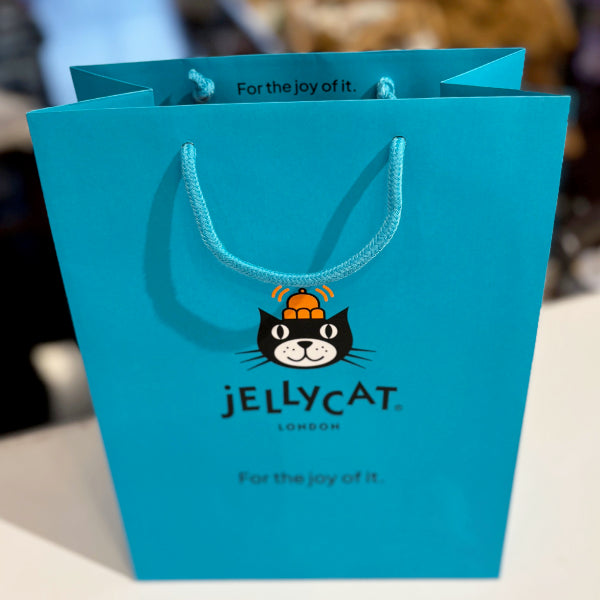 This charming medium size Jellycat shopping bag is ready to become the cozy home for all your fluffy friends! Tote your treasured Jellycat companions in style or surprise someone with a delightfully packaged gift. It's not just a bag—it's part of the Jellycat adventure! Available with purchase of Jellycat. Limit 1 per Jellycat.