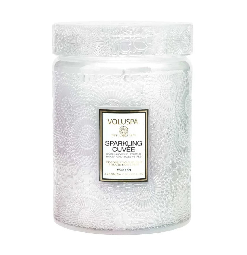 Pop a bottle of Voluspa’s finest blend, it’s time to celebrate! A mix of beautiful aromatic complexity, Sparkling Cuvée opens with vivacious fruit tones of Sparkling Wine, Pomelo and Red Currant. The effervescence of Sparkling Wine is the heart of the celebration, with bubbles cascading to the surface, dancing and mingling with juicy Nectarine and Bulgarian Rose Petals. A velvety, smooth finish of Woody Oak serves as the perfect stage for this aromatic affair. Raise a glass of Sparkling Cuvée, your olfactory aperitif for every unforgettable occasion.