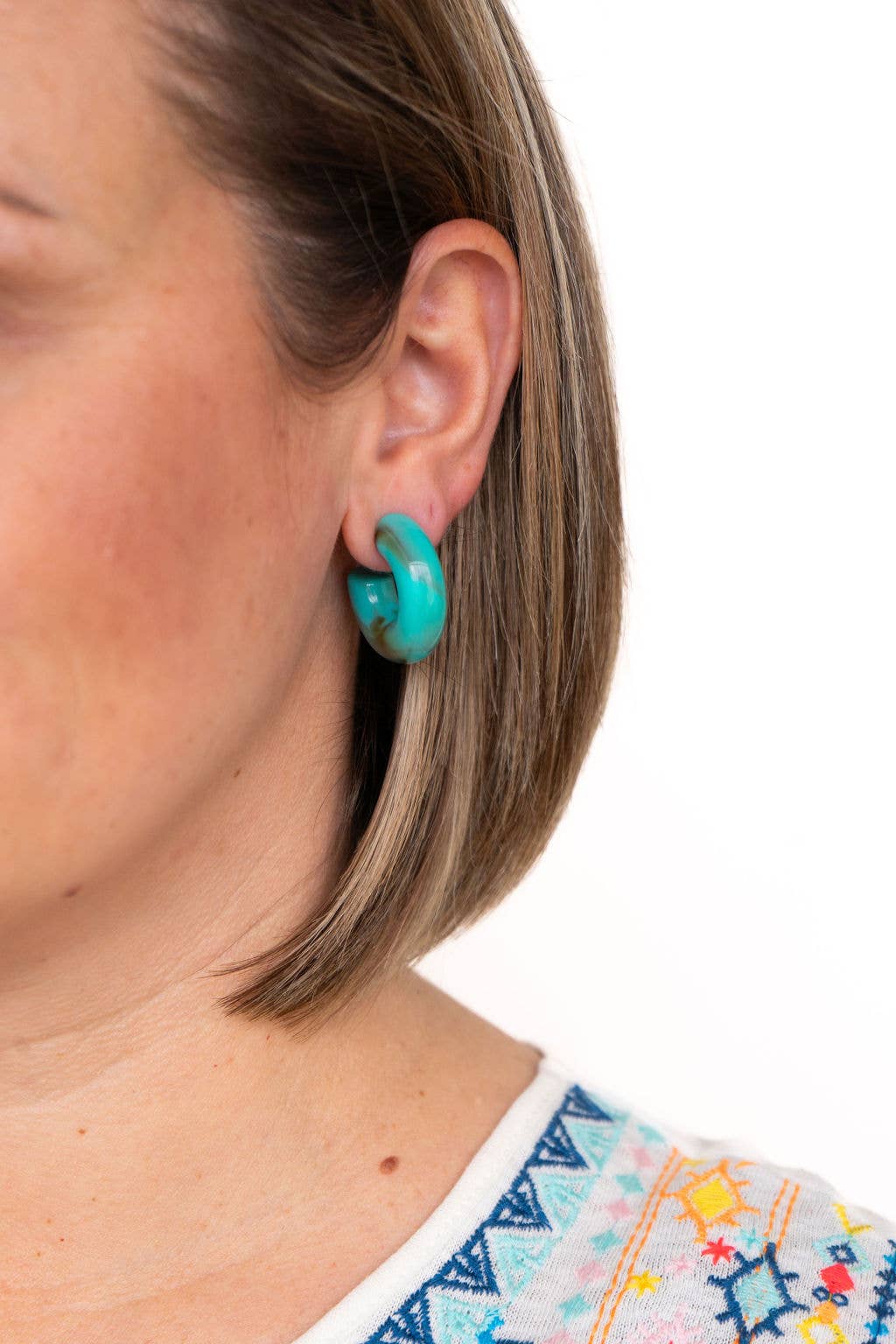 The Chloe Hoops boast a modern, chunky silhouette, crafted from durable resin for everyday wear. Their timeless design and long-lasting quality make them the perfect statement piece.