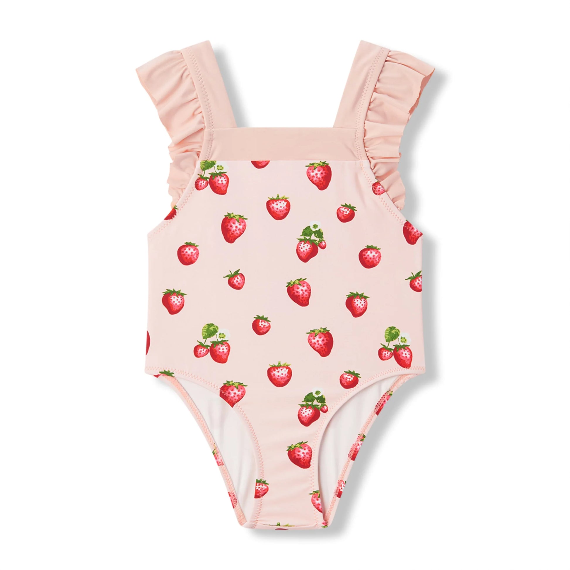 Your little one will make a splash in style with our Ruffle Square Neck Swimsuit in the Strawberry print. This swimsuit is made from a fade-resistant blend of 87% nylon, 13% spandex, and sun protection of UPF 50+, it’s perfect for fun-filled days at the pool or beach.