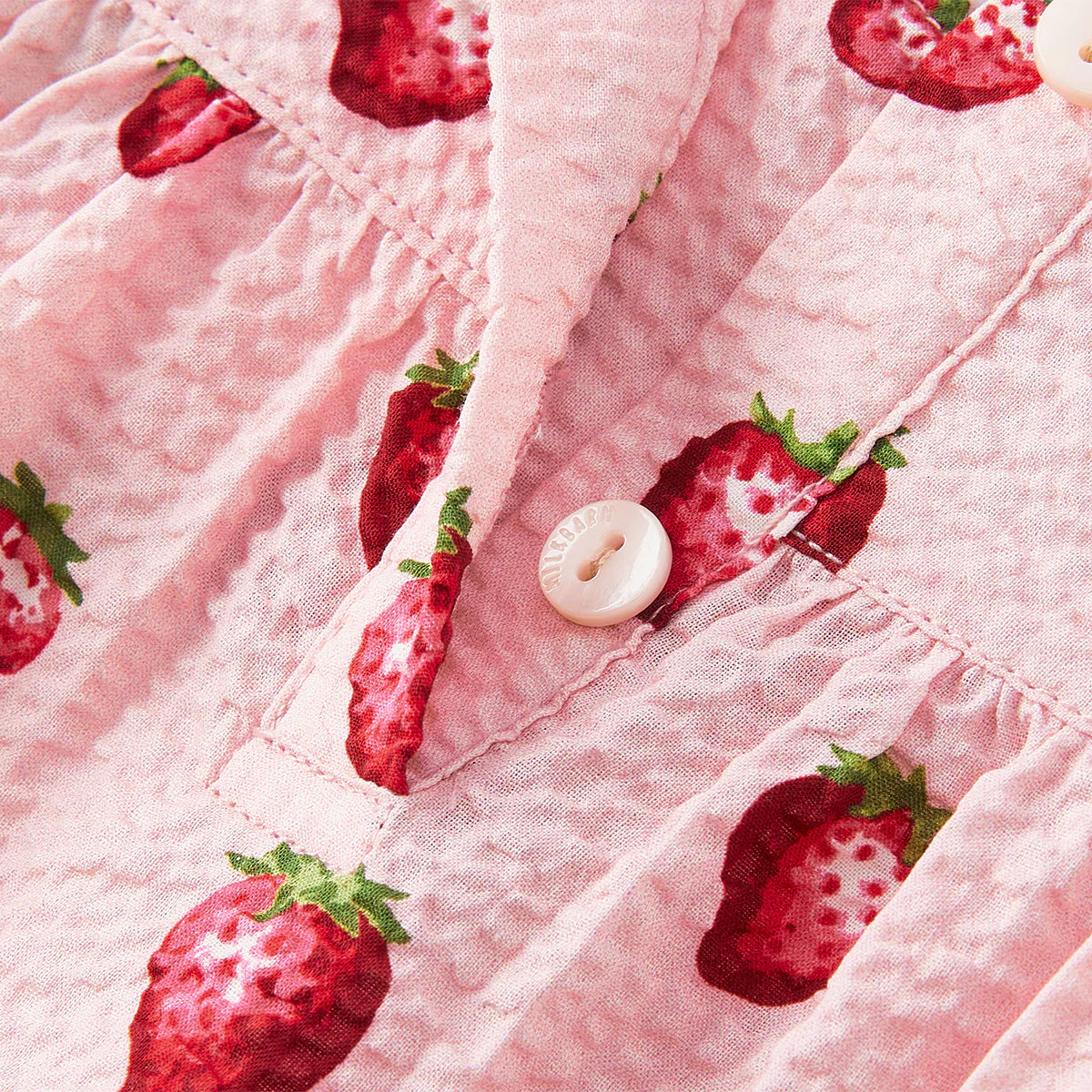 We want to provide chic fashion for your little ones. Dress them in our Strawberry Ruffle Collar Dress and watch them spin around with joy. The ruffled collar and adds a special highlight to this Milkbarn treasure, ensuring elevated fashion every time it is worn.