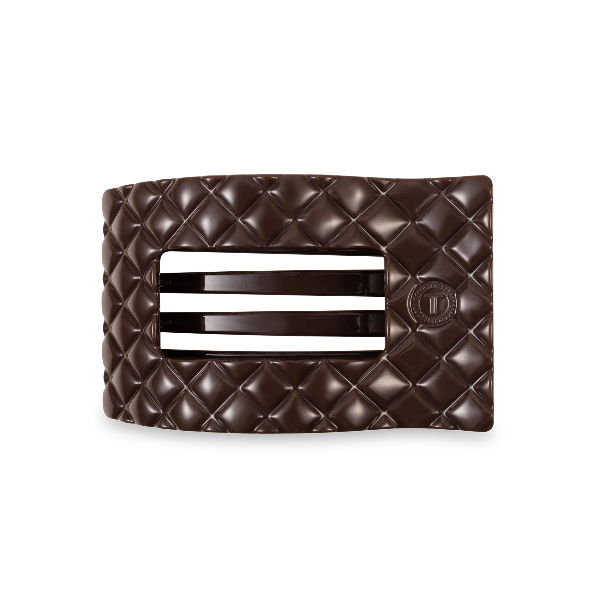 TELETIES - Flat Rectangle Hair Clip | Medium | Truly Taupe Quilted
