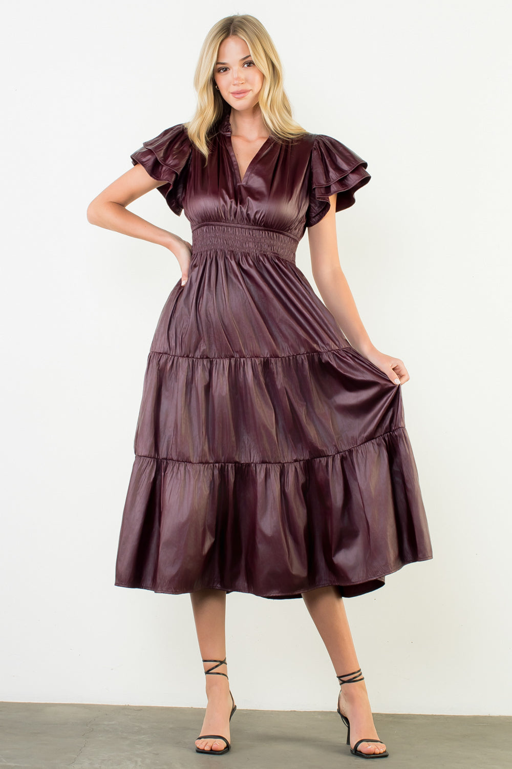 THML Faux Leather Midi Dress