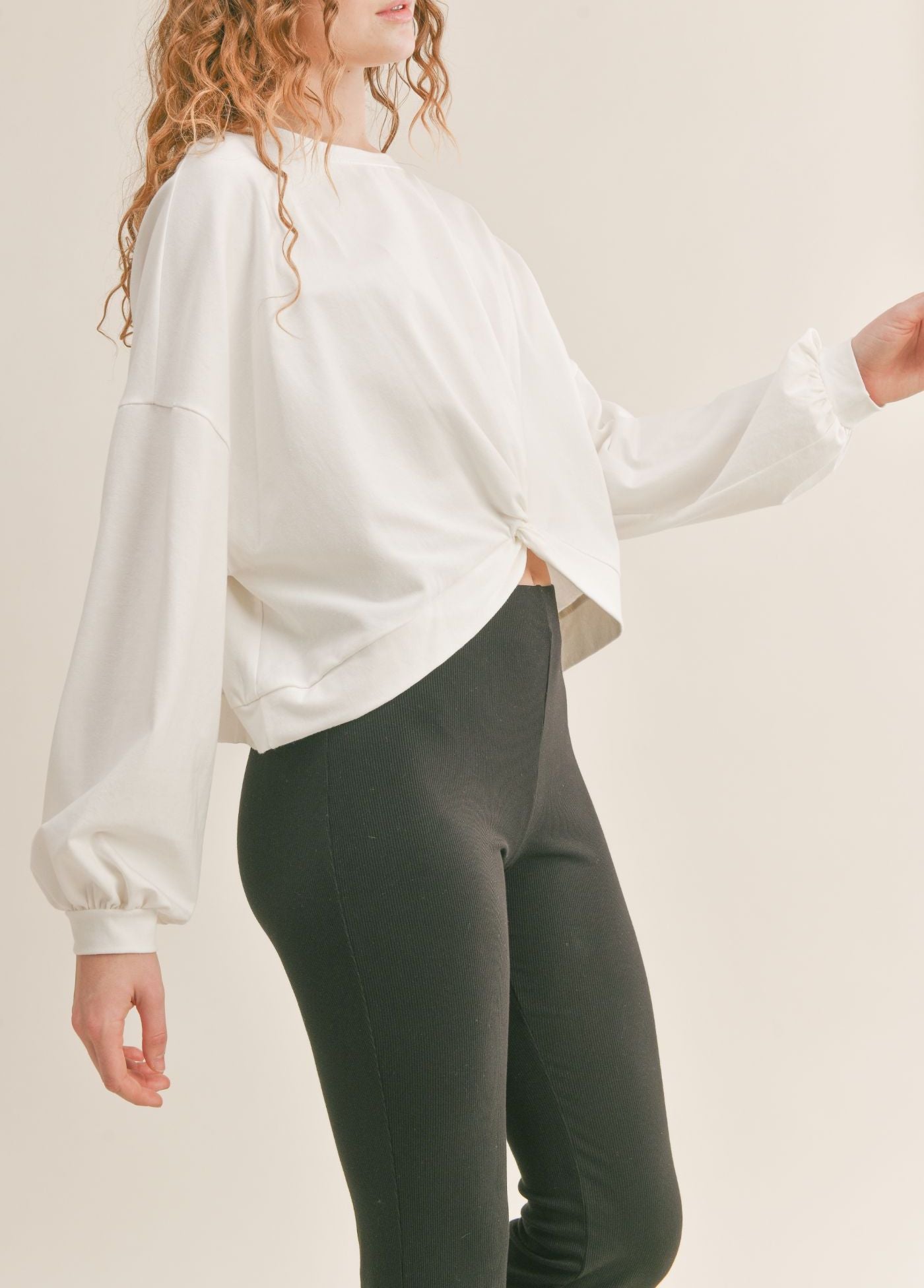 A good sweatshirt never goes out of style! The Mariana Sweatshirt is made using our ultra soft fleece fabric with a relaxed fit, dolman sleeve, and a unique pleat detail at the front and back waist to create a flattering shape. Pair this sweatshirt with our Harper Jogger for an on-trend cozy look you'll wanna wear daily.Machine wash cold, gentle cycle, wash dark color separately, do not bleach, hang to dry, warm iron if needed.