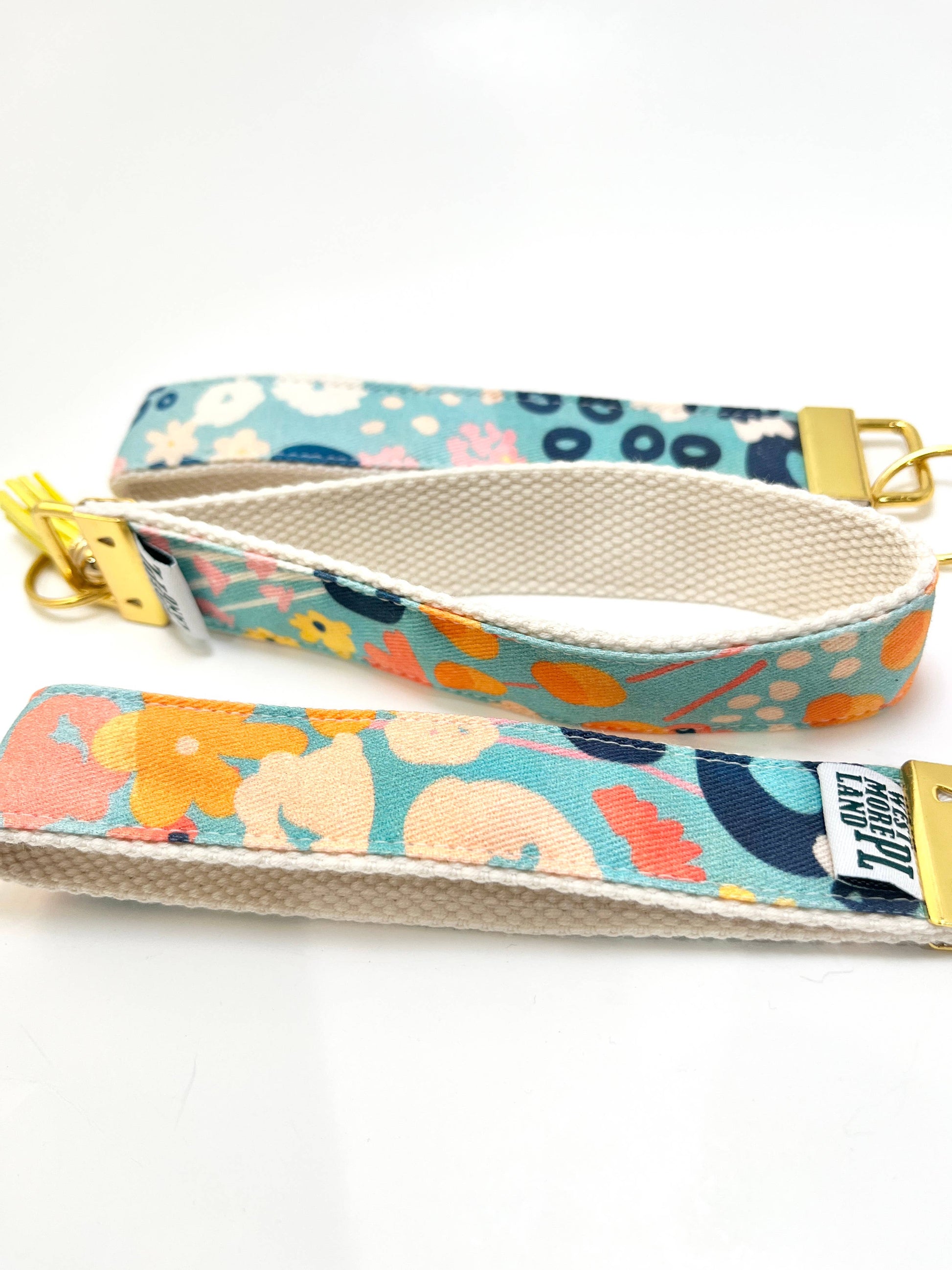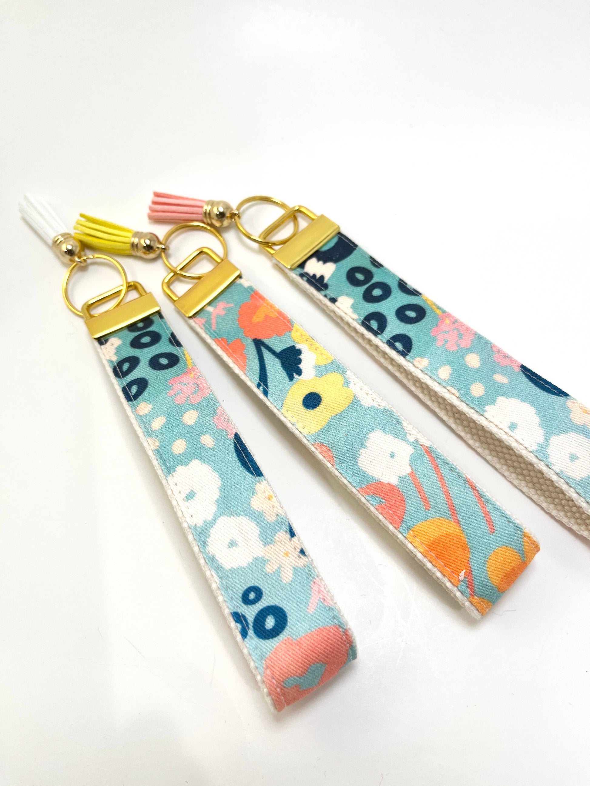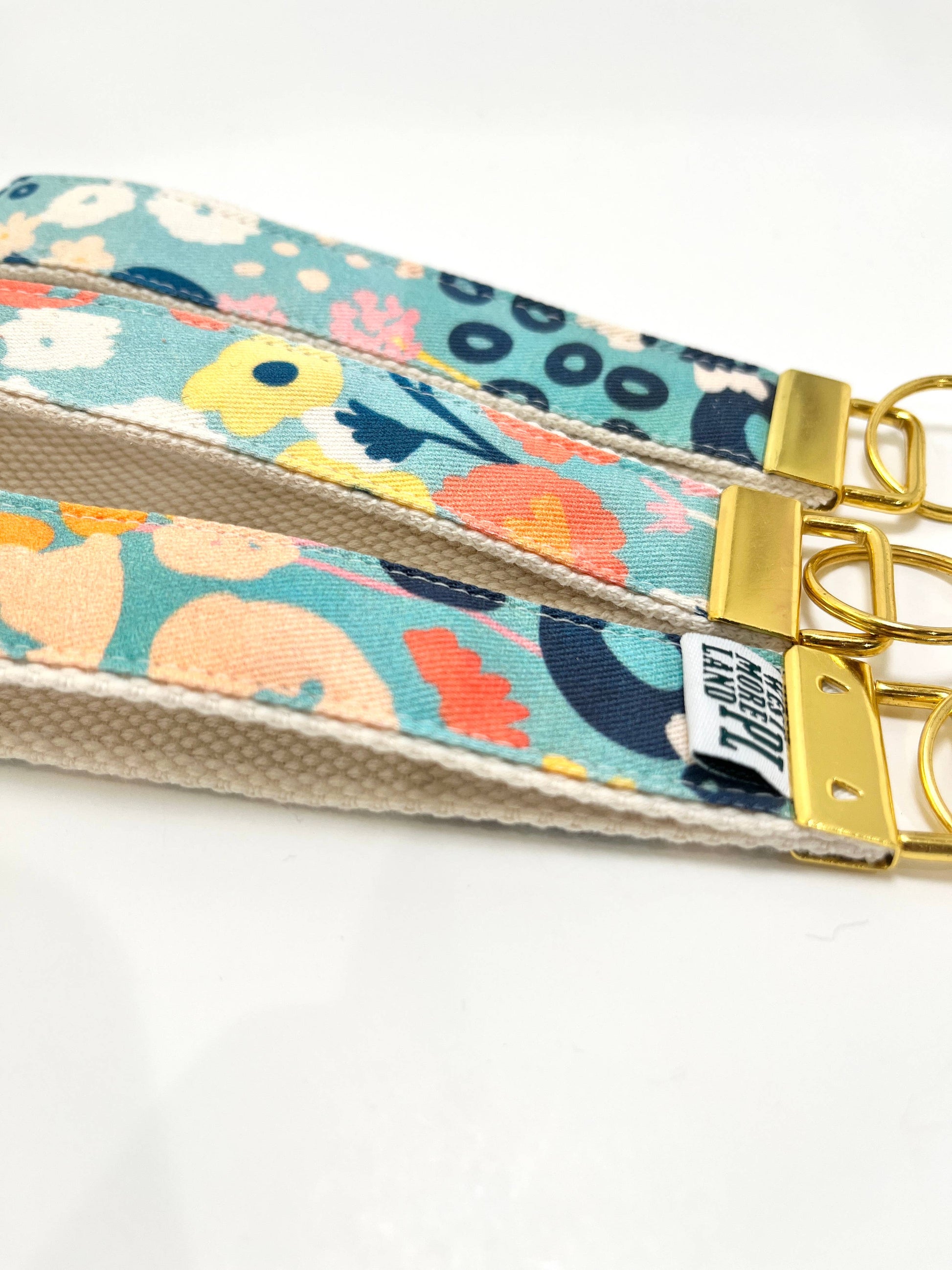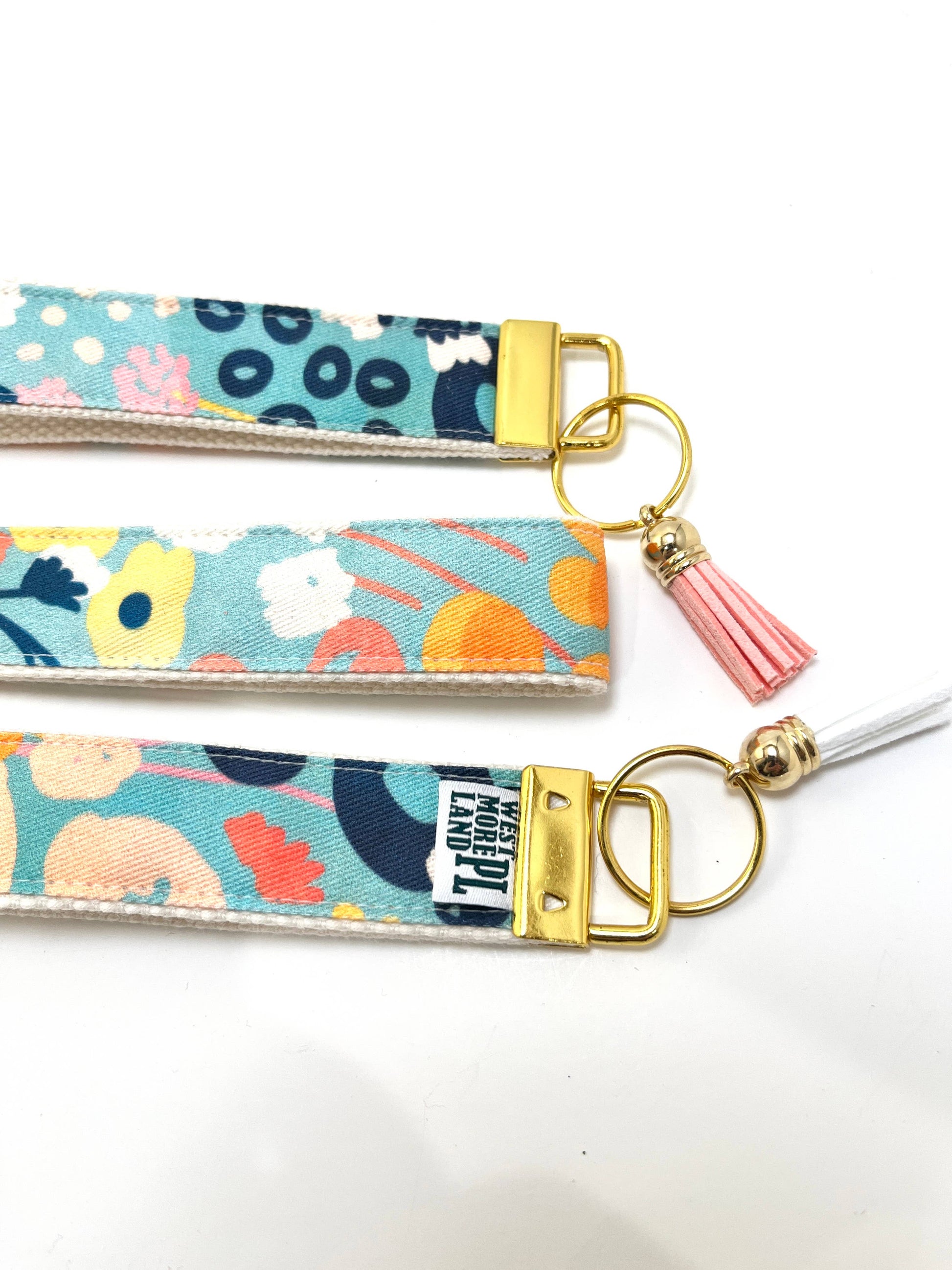 Key Fob Wristlet - Blue Modern Wildflowers