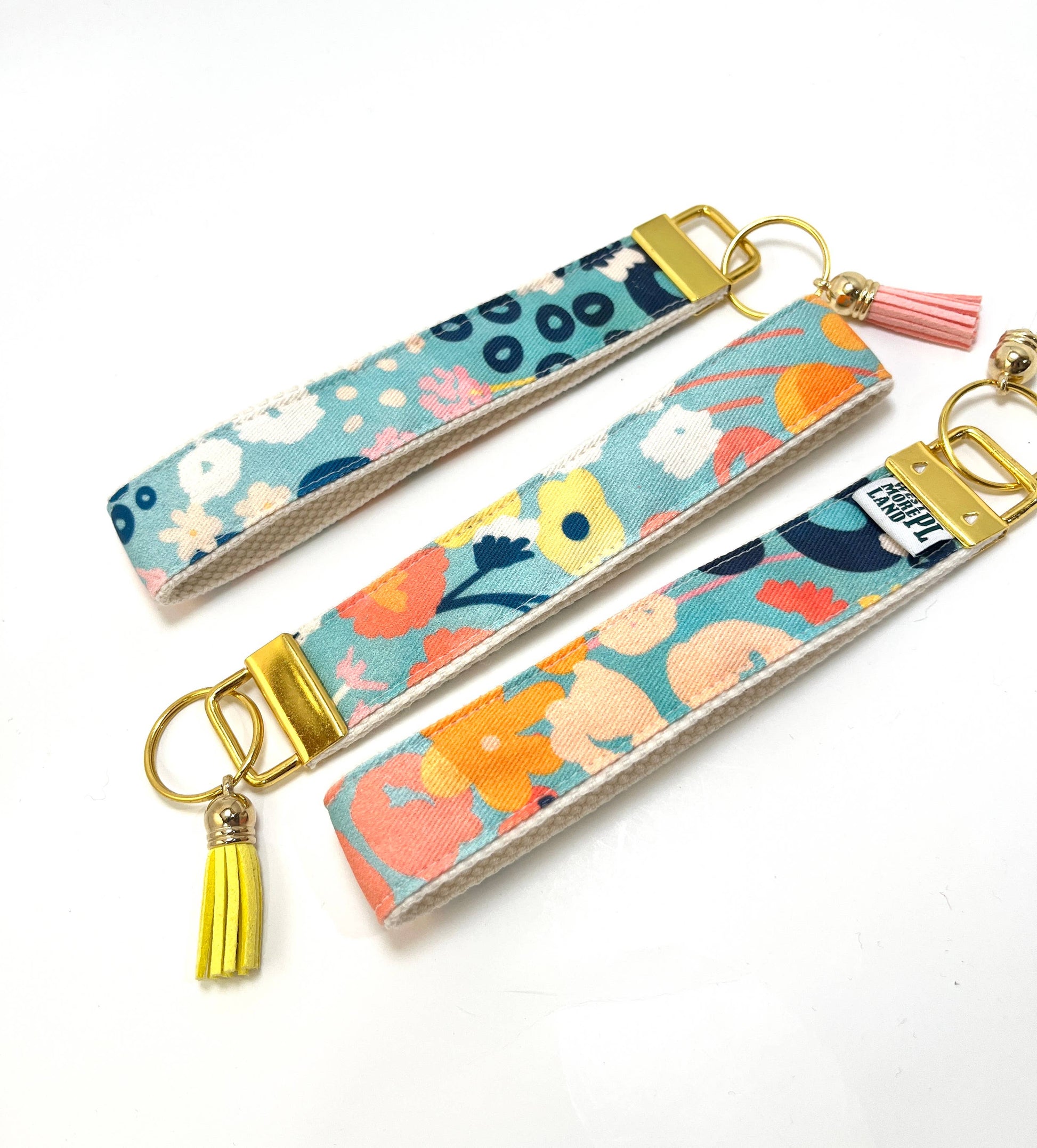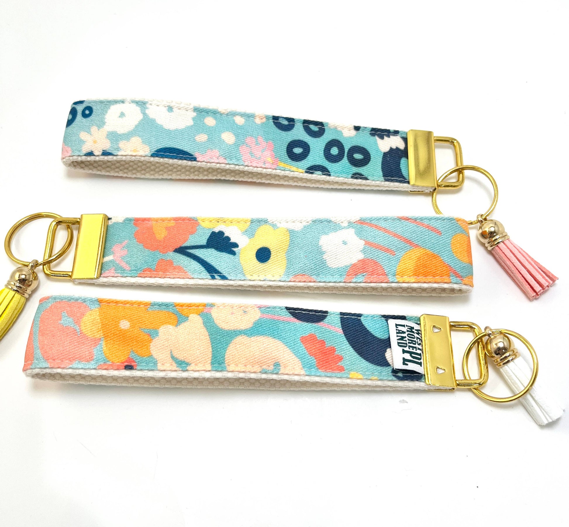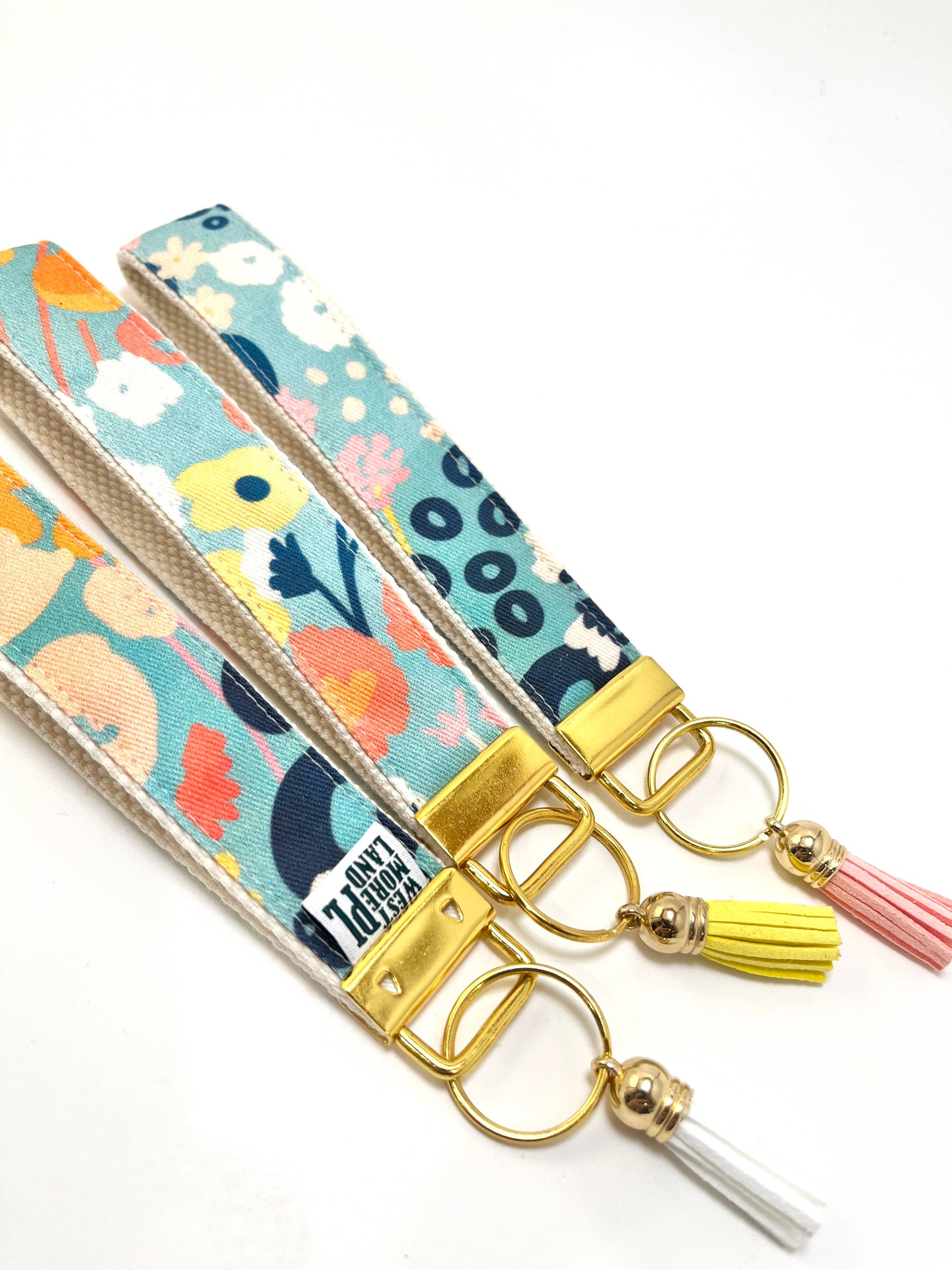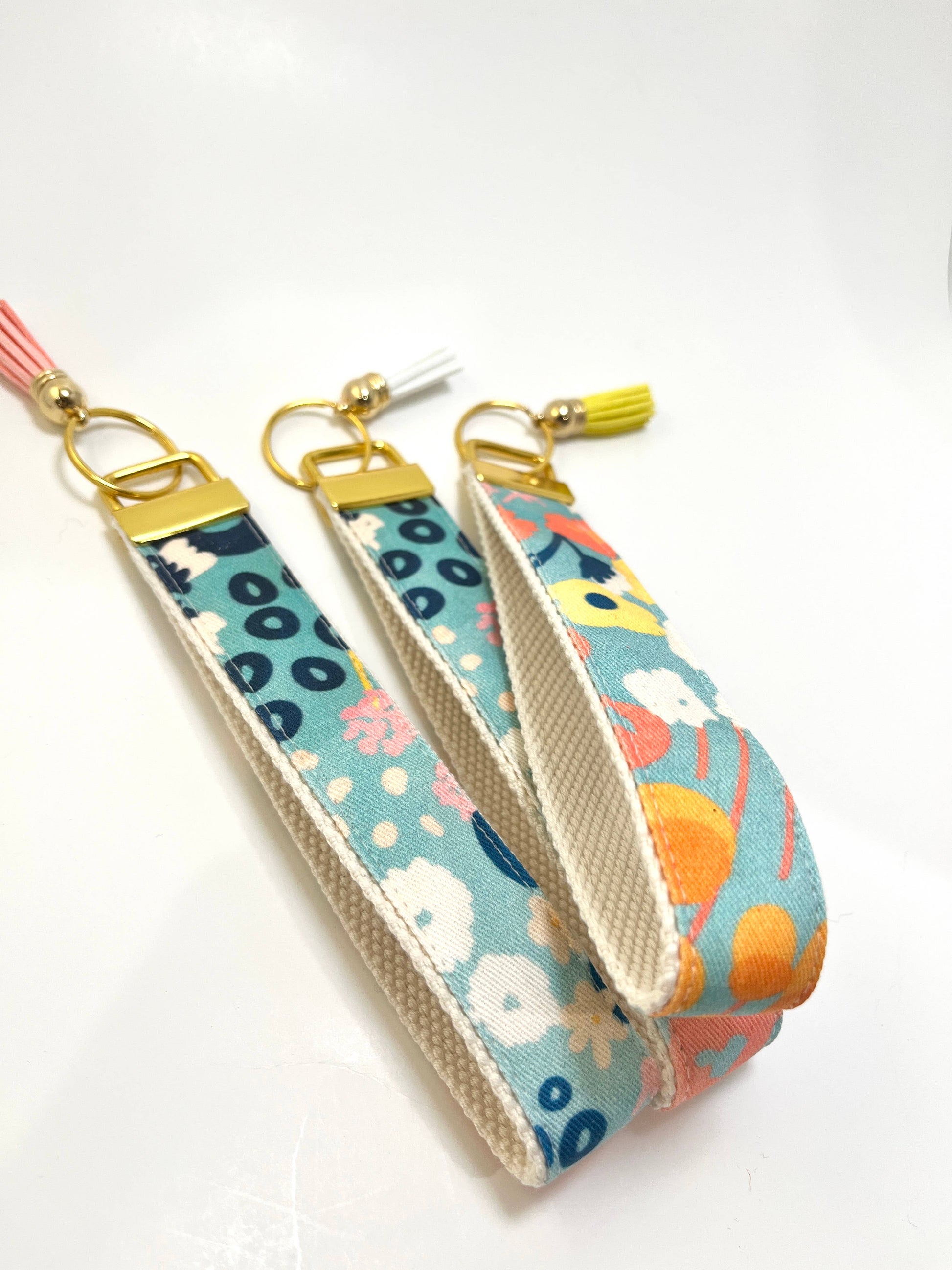 Key Fob Wristlet - Blue Modern Wildflowers