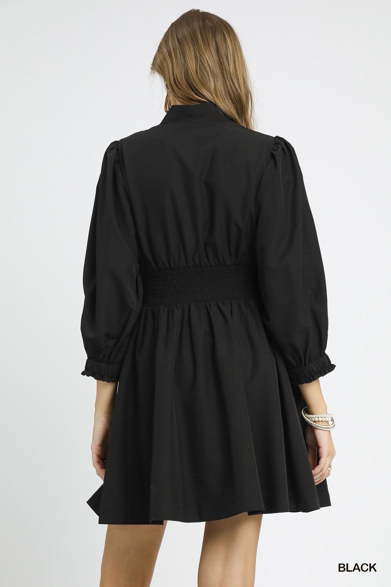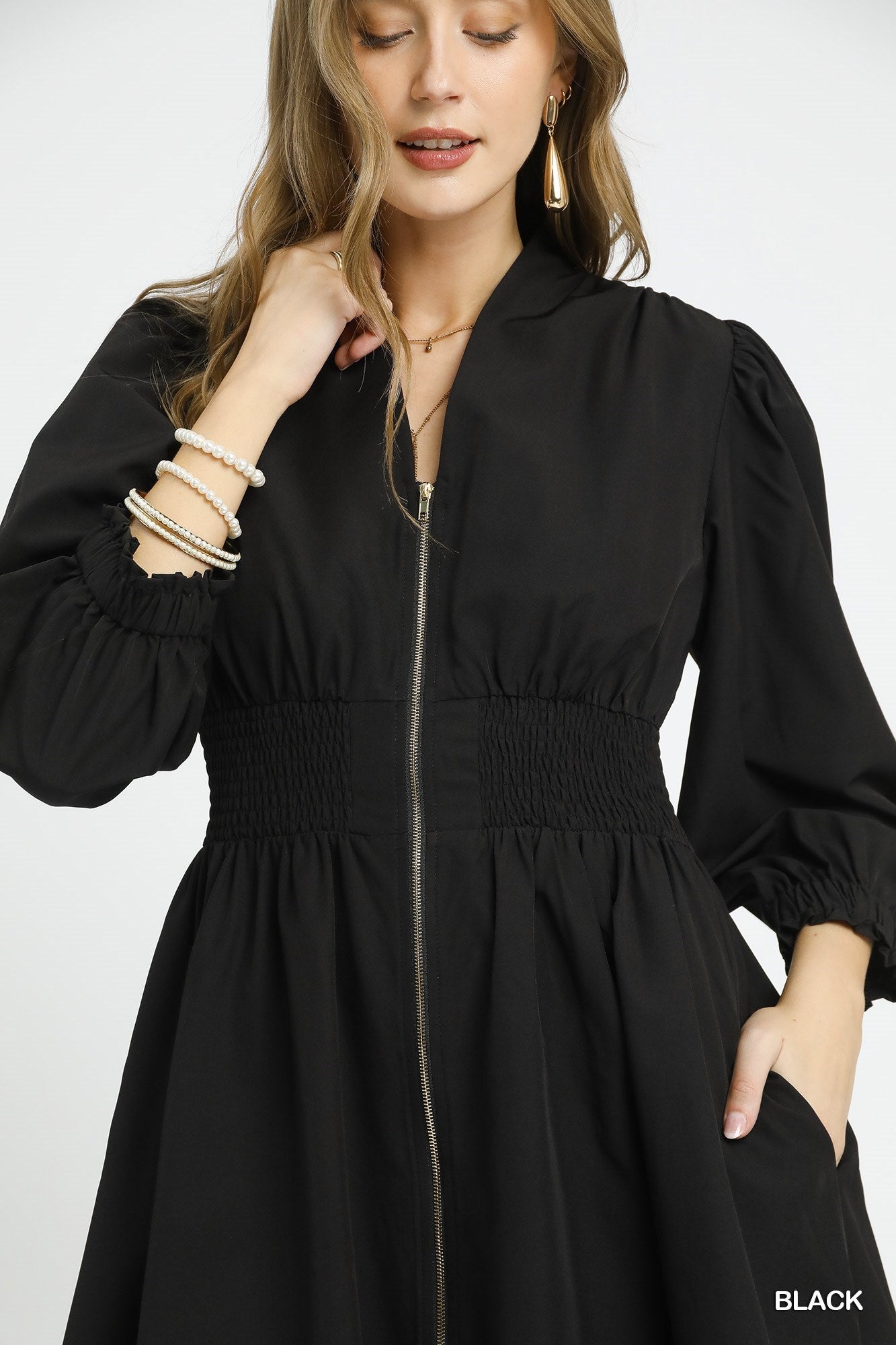 Elevate your wardrobe with this Zip-Front Smocked Waist Mini Dress, designed to combine style and comfort effortlessly. The front zipper closure offers easy wearability while adding a modern touch. Long puff sleeves bring a romantic and trendy vibe, perfectly balancing the dress’s playful mini length. The smocked elastic waistband cinches your waist, enhancing your silhouette and providing a comfortable fit throughout the day. Its flattering A-line shape flows gracefully, and the fully lined interior ensures a smooth, polished look. Ideal for both casual outings and special occasions, this dress is a versatile addition to your collection.